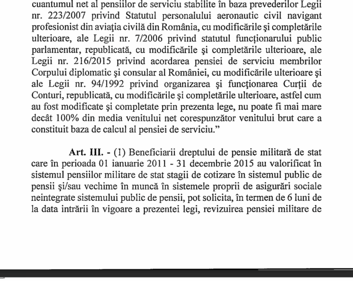 Creșterea vârstei de pensionare, CIBS-ul plătit de activi și plafonarea pensiilor militare aduc fonduri utilizabile pentru actualizarea pensiilor militare