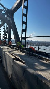 Când se reia traficul normal, pe ambele benzi, pe Podul Prieteniei, Giurgiu-Ruse (Bulgaria)