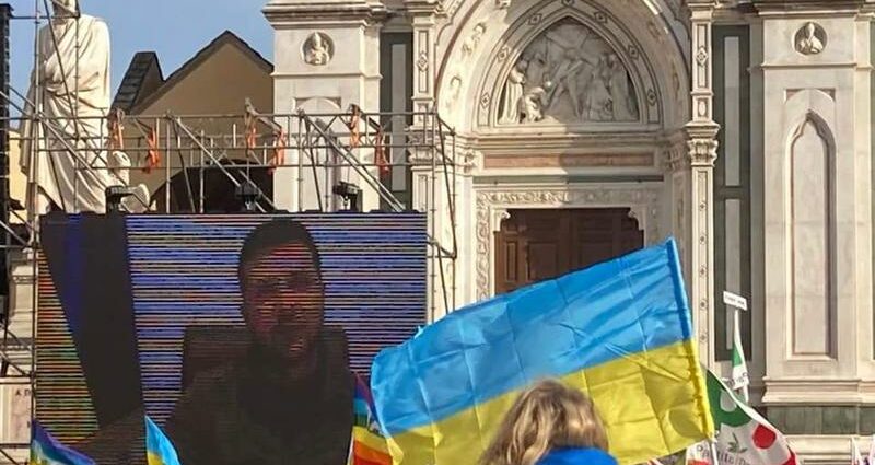 Grazie Firenze uD83DuDC99uD83DuDC9B I lived in Florence for 1,5 years and it’s heartwarming to see a big rally in support of Ukraine there. President Zelenskyi addressed the crowd via videolink, spoke about 79 Ukrainian children who have been killed by Russian barbarians #ClosetheSkyoverUkraine pic.twitter.com/7caF2QbLW3