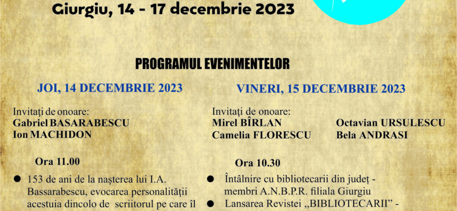 Sursa articol si detinatorul dreptului de autor: https://obiectivgiurgiu.ro/14-17-decembrie-zilele-bibluiotecii-judetene-i-a-bassarabescu/