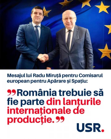 USR: Radu Miruță, ministrul Apărării: Industria națională de apărare a României trebuie să fie parte din lanțurile internaționale de producție