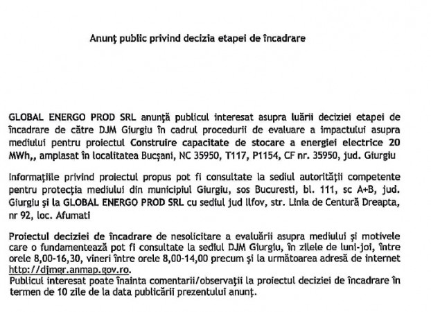 Sursa articol si detinatorul dreptului de autor: http://giurgiupesurse.ro/anunt-public-privind-decizia-etapei-de-incadrare-26/