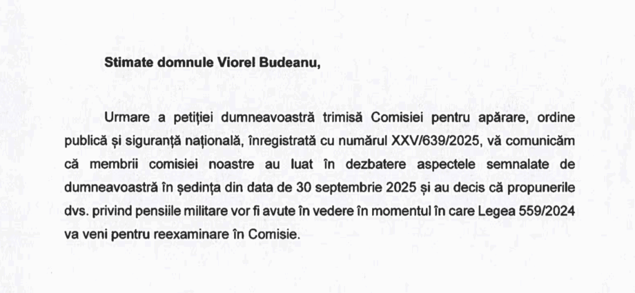 Tocmai decizia nr. 126/2025, negândită juridic si literar, a CCR, ii discriminează și pe viitorii pensionari militari față de majorările ulterioare ale soldelor de grad și de funcție ale activilor. Rămân și ei cu pensiile stabilite neactualizate, la fel ca și cei pensionați până la data intrării in vigoare a legii.