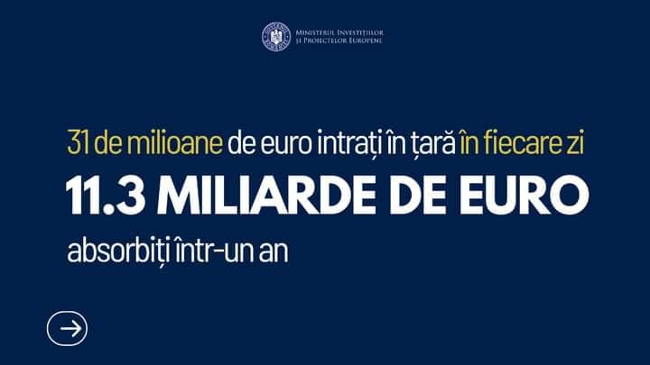11,3 miliarde de euro din fonduri europene au intrat în România din mai 2022 și până în prezent, perioadă când Ministerul Investițiilor și Proiectelor Europene (MIPE) a fost condus de Marcel Ioan Boloș.