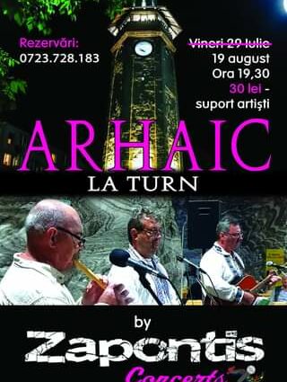 O veste buna: Nicolae Dobos , leaderul Trupei Arhaic, s-a vindecat de covid! 🙂 Asadar, Concertul din 29 Iulie, se reprogrameaza Vineri 19 August Ora 19,30 Sunati la 0723 728 183 pentru a rezerva! Bilete se gasesc si la Turnul Cu Ceas 🙂