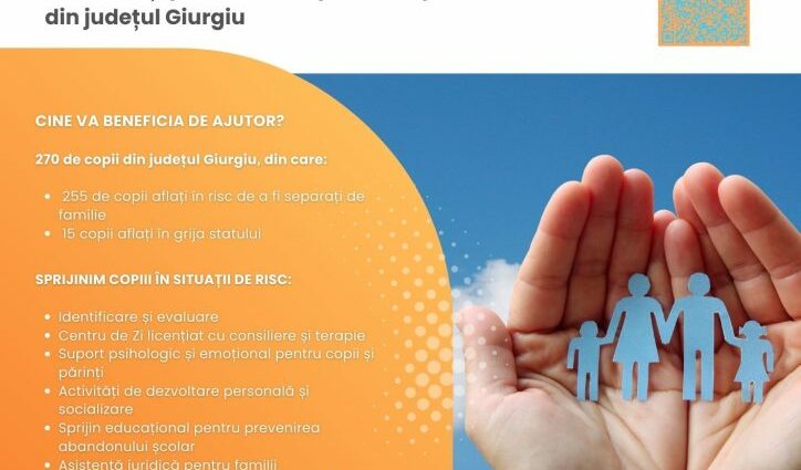 Începând cu luna februarie 2025, Direcția Generală de Asistență Socială și Protecția Copilului (DGASPC) Giurgiu este partener în proiectul „FAMILII ÎMPREUNĂ – Soluții comunitare pentru reintegrarea familială și prevenirea separării copiilor din județul Giurgiu”, un demers cu finanțare europeană care are ca obiectiv sprijinirea familiilor din Cosoba, Cartojani, Dealu, precum și din alte localități ale județului, prin servicii integrate, accesibile și adaptate nevoilor acestora.