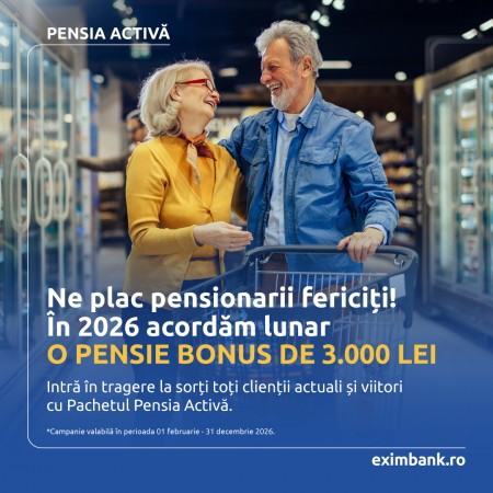 Exim Banca Românească acordă în acest an o serie bonusuri în bani, alături de acces la servicii moderne, seniorilor care optează pentru încasarea pensiei într-un cont deschis în cadrul pachetului Pensia Activă. Prin această inițiativă, banca urmărește atât recompensarea loialității, cât și facilitarea unei gestionări sigure, comode și eficiente a veniturilor lunare, oferind clienților vârstnici soluții simple, costuri reduse și multiple avantaje adaptate nevoilor lor.
