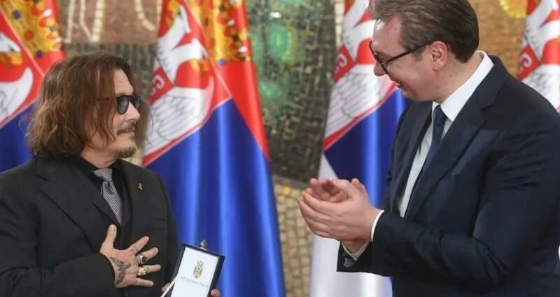 Johnny Depp, premiat de presedintele VucicFoto: Facebook Aleksandar Vucic