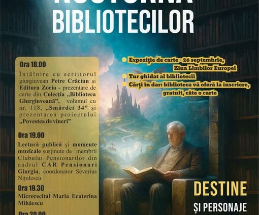 ”Nocturna Bibliotecilor” se va desfășura până la ora 22, la sediul din șoseaua București, nr. 53.