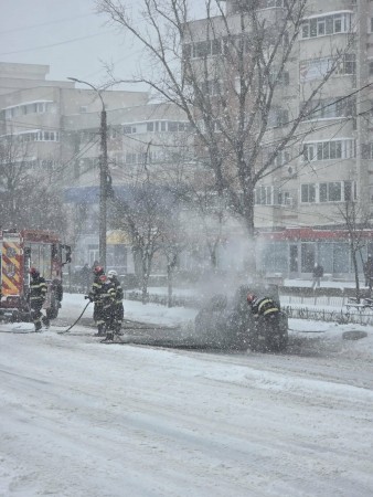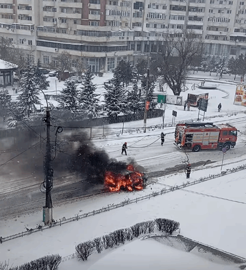 Un autoturism a ars complet, pe carosabilul șoselei București , astăzi la prânz, în municipiul Giurgiu