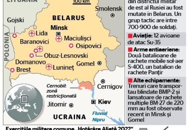 Pe teritoriul Belarusului ar fi ajuns între şapte şi 10 grupuri tactice (BTG) din districtul militar de est al Rusiei , un astfel de grup tactic numără între 700-900 de soldaţi , 12 avioane de luptă Su-35, două batalioane mobile de rachete sol-aer S-400, un batalion de rachete Panţir. Trenuri care transportau blindate BMP-2 şi lansatoare de rachete multiple BM-27 de 220 mm au fost observate în Minsk şi Gomel. Statele Unite evaluează îndeaproape dacă Lukaşenko mai deţine pârghiile de control în ţara sa sau dacă procesul de luare a deciziilor a fost în mare parte transferat Rusiei.