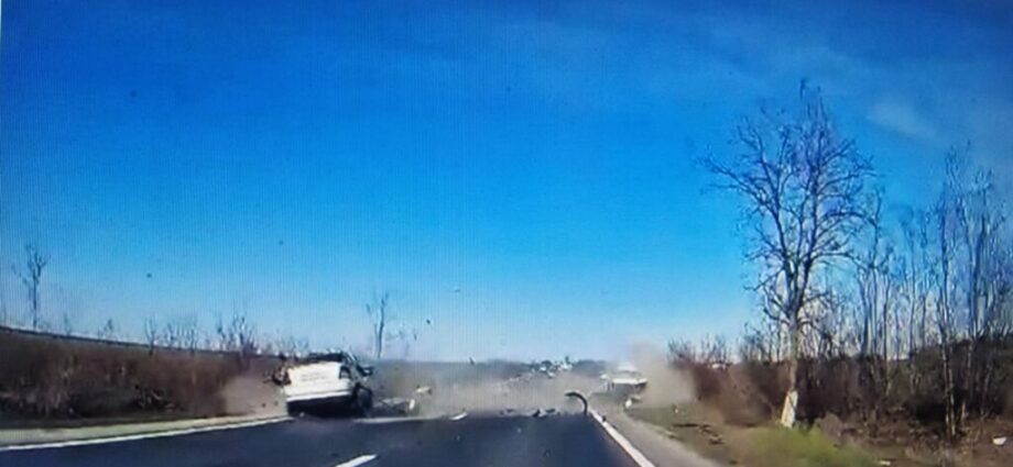Imagini ale accidentului de duminică, pe DN 6, între Valea Plopilor și Ghimpați, județul Giurgiu, soldat cu moartea unui bărbat de 57 de ani