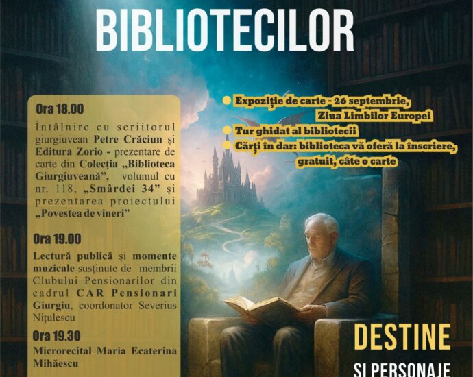 Așa cum puteți citi pe afișul dedicat acțiunii, la Giurgiu, vineri 26 septembrie va avea loc un eveniment în premieră i-am spune, sub genericul Nocturna Bibliotecilor, tema fiind prezentarea unor destine și personaje celebre din literatură. La eveniment va participa și corul CAR Pensionari din Giurgiu, ce va susține un program consacrat acestei acțiuni. Din […]
