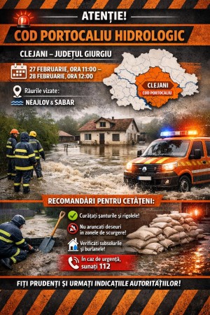 Comuna Clejani sub COD PORTOCALIU de inundații
