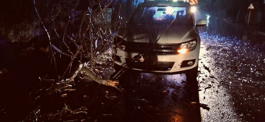 Noapte de coșmar în localitățile județului Giurgiu: copaci doborâți de vânt, mașini avariate și drumuri blocate