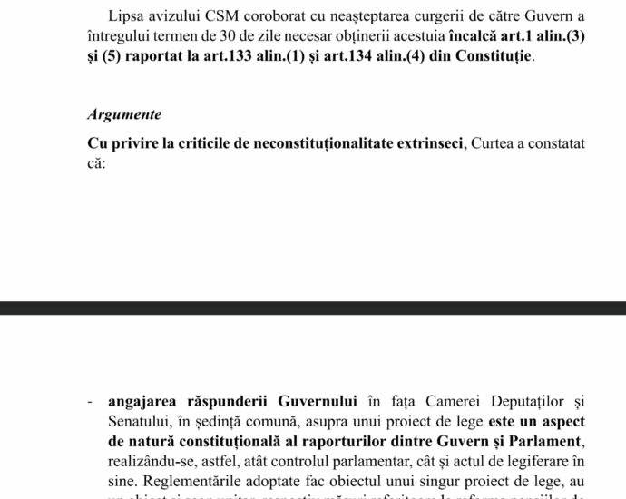 Motivul extrinsec de neconstituționalitate fiind lipsa avizului CSM, punerea de acord a legii cu decizia CCR nu se poate face decât prin reluarea de la zero a procesului de legiferare a modificării celor două legi, voință exprimată deja de președintele Nicușor și de reprezentanți ai coaliției guvernamentale.