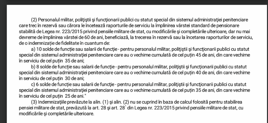 Se introduc indemnizaiți de fidelitate la trecerea in rezervă, ceva similar cu ajutoarele acordate de Legea nr. 284/2010, suspendate anual și abrogate prin L 153/2017. Beneficiază de indemnizații doar cei care trec in rezervă după intrarea in vigoare a ordonanței. De ce să nu fie disctriminați puțin și ciucanii?