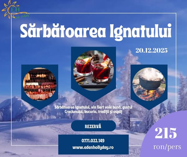 EDEN HOLLYDAY – Agenţie de turism – organizează: „POVESTE de IGNAT” EXCURSIE de 1 zi – Data plecării: 20.12.2025 Bucurie, Tradiții și Ospăț maxim de Sărbătoarea Ignatului, Vin fiert și multă Voie […]